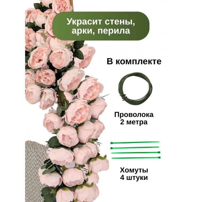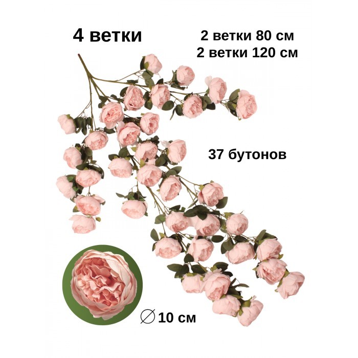 Цветы искуственные Пионы каскадные (37 штук, 120 см, цветок 10 см) нежно розовый 265900