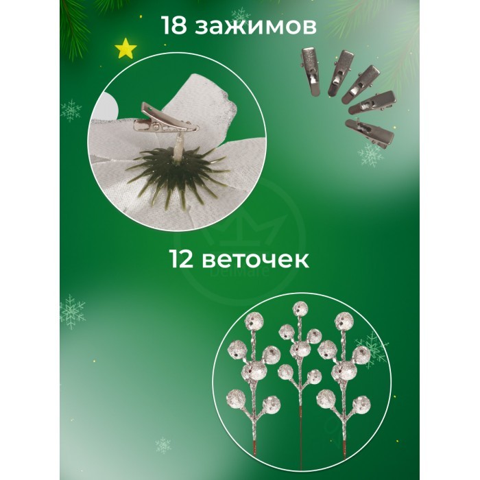 Набор Цветы Пуансеттия (18 штук - 14 см + веточки+зажимы) серебро 266221