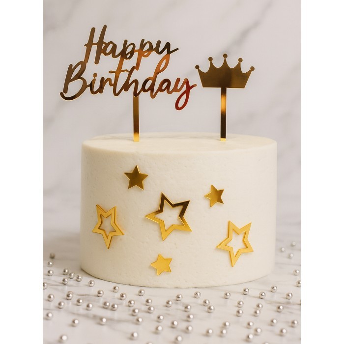 Топпер зеркальный Happy birthday (Корона/палочка 1 шт, Звезда 3 шт), золото 266157