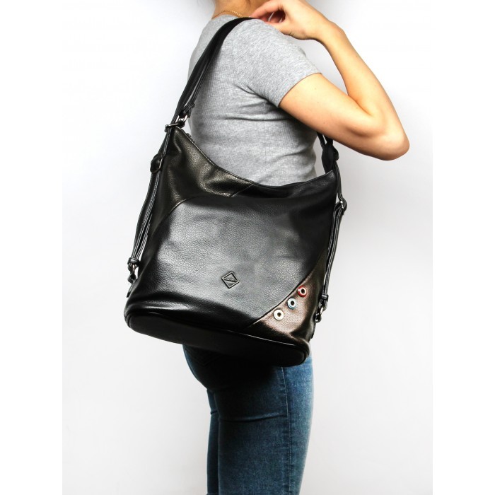 Сумка женская искусственная кожа GT-62409 F 001-1/401/812, (рюкзак-change) 1отд+карм/перег, (УЦЕНКА/ДЕФЕКТ: облазит кож/зам на ручках) черный 263004