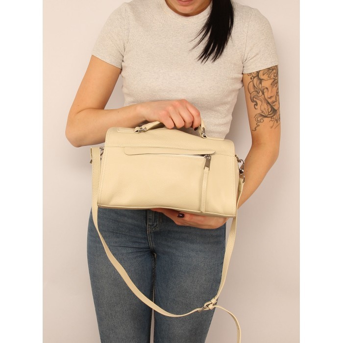 Сумка женская натуральная кожа XYN-3298, 1отд+еврокарман, плечевой ремень, молочный SALE 265557