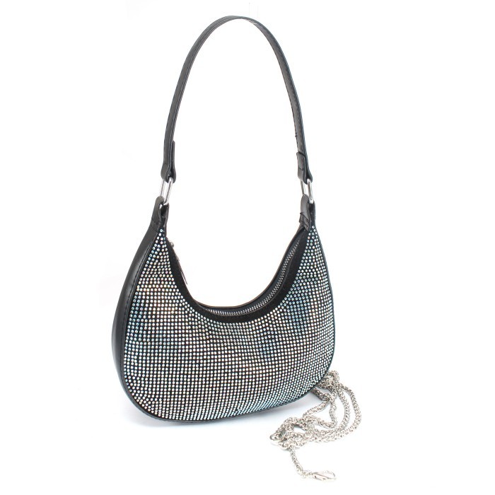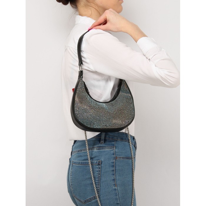 Сумка женская иск/кожа+текстиль Ch&K-5801 1отд, плечевой ремень цепочка, party-голография, (УЦЕНКА/ДЕФЕКТ: отпало несколько страз) черный 258949